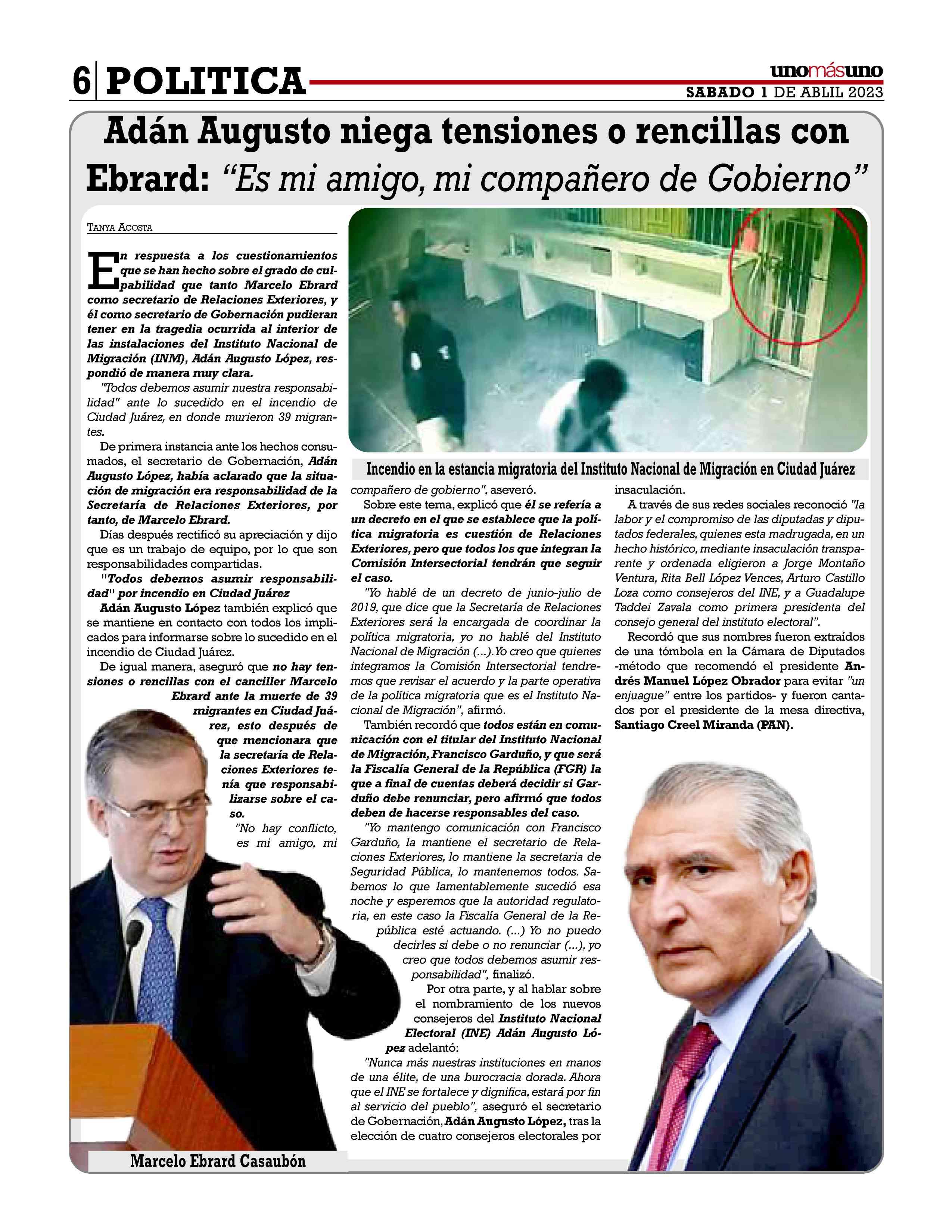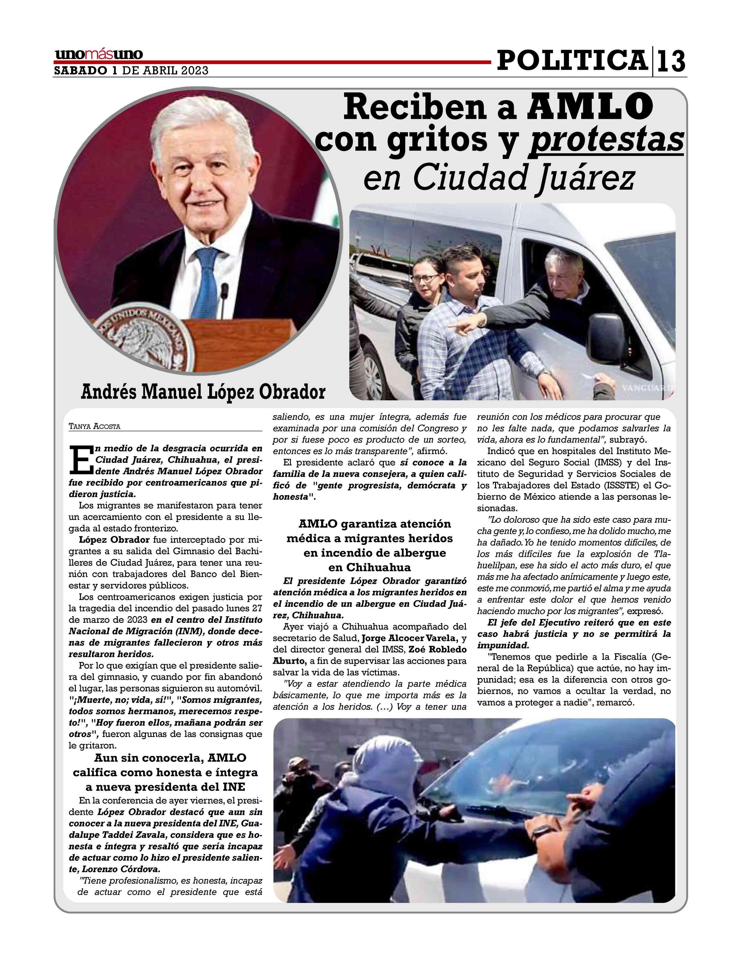 Consecuencias: En la tragedia de la estación migratoria de Ciudad Juárez no habrá impunidad y cuando se conozca a detalle lo que ocurrió se deslindarán y fincarán responsabilidades,aseguró el presidente Andrés Manuel López Obrador y dijo que se castigará de conformidad con la ley a quieneshayancausado estadolorosatragediaopudiendo evitarla no lo hicieron,como el haber encerrado bajo llave y candado a los migrantes y al momento de la conflagración no abrirelcandadoysacarlos.Dijoquees inverosímilsaber "que no encontraron la llave del candado y por eso los dejaron morir"."De ninguna manera vamos a ocultar los hechos,no vamos a actuar en forma injusta ante esto que es tan doloroso,tan triste".
