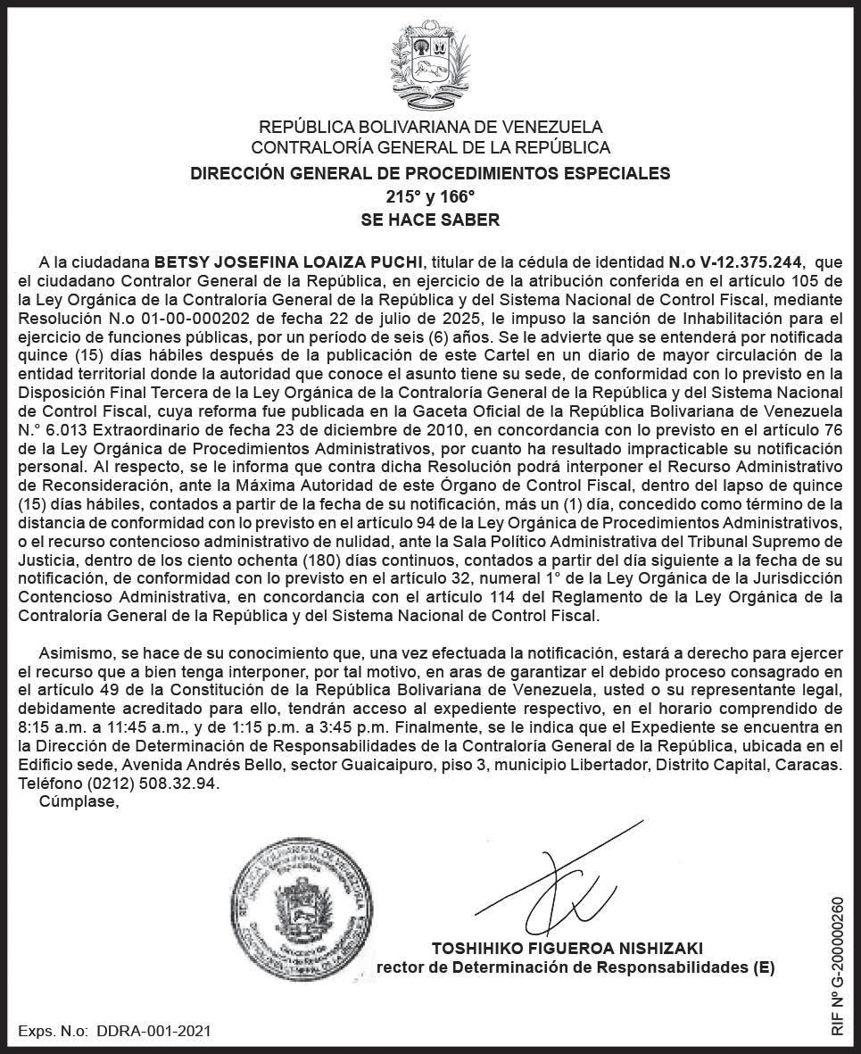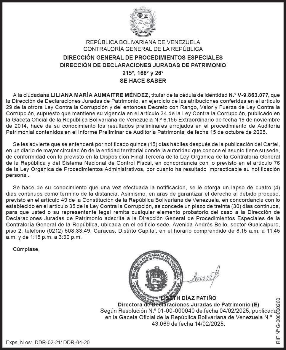 Valle de la Pascua, 09/12/2025 215º y 166º EDICTO SE HACE SABER: