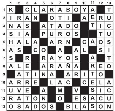 /3.- (Inv) Onomatopeya del mugido de la vaca. – Se desplomará, perderá la vertical. –Memoria modificable de las computadoras. /4.- (Inv) Hembra del lobo. – Libro sagrado del judaísmo. /5.- El llamado “Estado musical de Venezuela”. – Antiguo Testamento (siglas). – (Ven) Muchacho flaco, enteco (Pl). /6.- Antiguo nombre de la nota do. – El sol entre los egipcios. – Dueña, señora. – Terminación de los alcoholes. /7.- Población y parroquia del municipio Sucre del estado Sucre. /8.- 99 en números romanos. – Infusión de hierbas aromáticas. –Copla canaria. – Siglas de Orquesta Típica. /9.- Planta hortense de raíz comestible. – Voz militar de mando. –Elemento de número atómico 45 y símbolo Rh. /10.- Atreverse. –Ciudad ___, población del municipio Angostura del estado Bolívar. /11.- (Inv) Símbolo del rubidio. – (Ven) Expresión usada para pedir tiempo en el juego. – (Inv) Rabia, furia, enojo. /12.- Emite su voz el perro. – Amansar, domesticar, amaestrar. /13.- San José de ______, capital del municipio Andrés Mata del estado Sucre. – Proyectil de un arma de fuego.