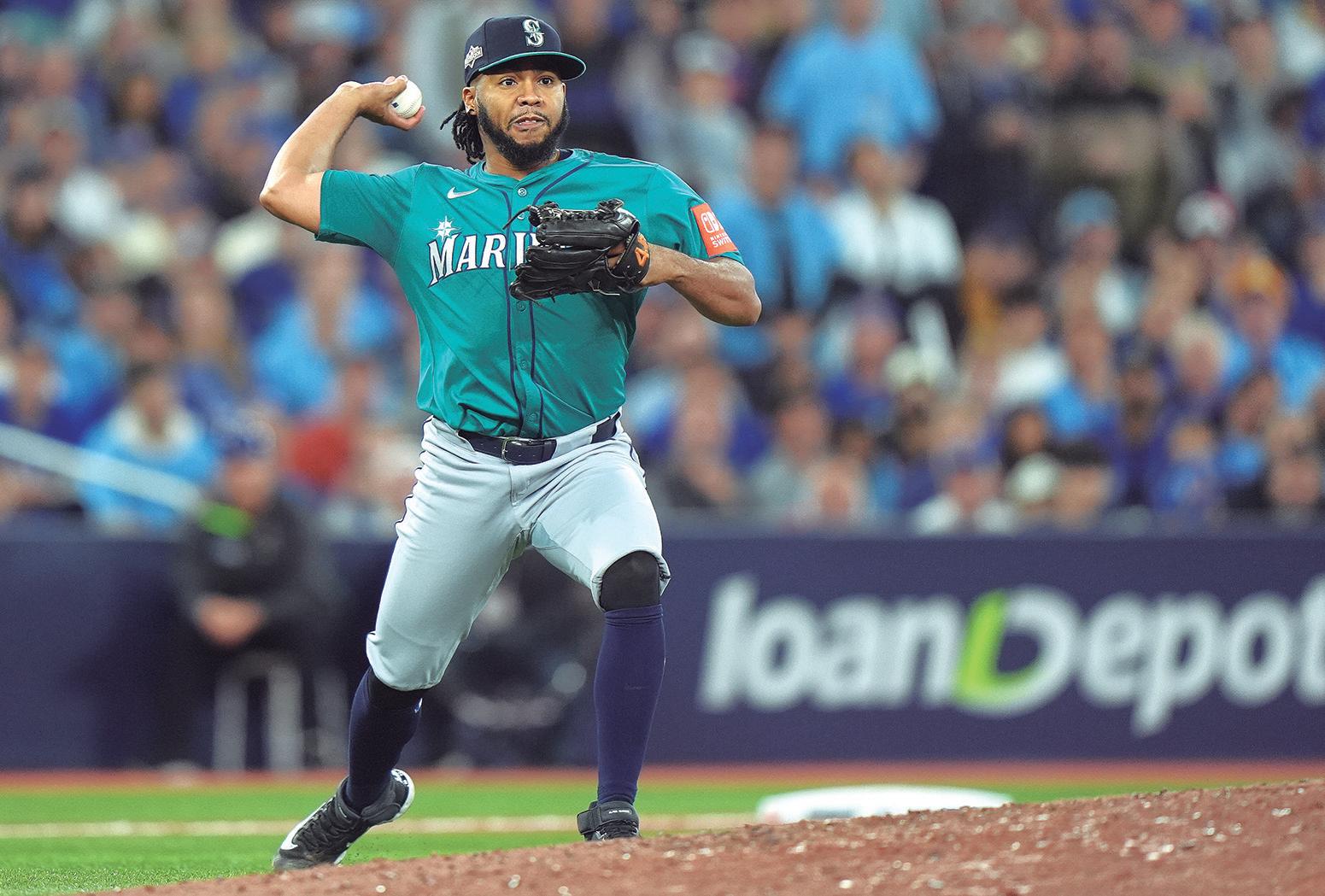 El relevista venezolano se llevó el triunfo al lanzar dos innings en blanco para que los Marineros ganaran su segundo juego en la Serie de Campeonato ante los Azulejos. P9