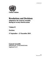 48 Resolutions and Decisions Adopted by the General Assembly During Its Seventy-fourth Session: Volume II: Decisions, 17 September - 27 December 2019
