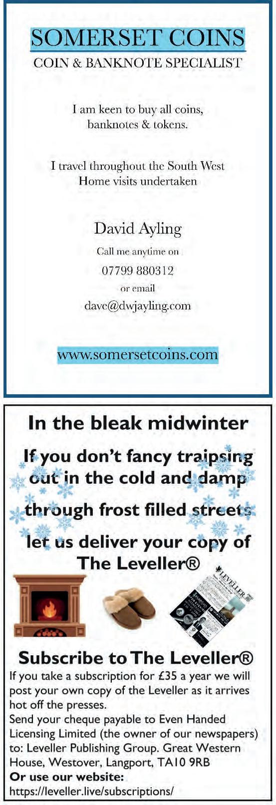 If you enjoy reading The Leveller® why not give our sister publication, Somerset Confidential® a go? Featuring many of the same writers as The Leveller®, Somerset Confidential® is an online news service. Delivered direct to your email inbox every week. It is delivered via the “Substack” platform. Somerset Confidential is not funded by advertising. All the work is carried out by independent journalists funded entirely by subscriptions. You can take a free subscription to get access to a lot of the material.