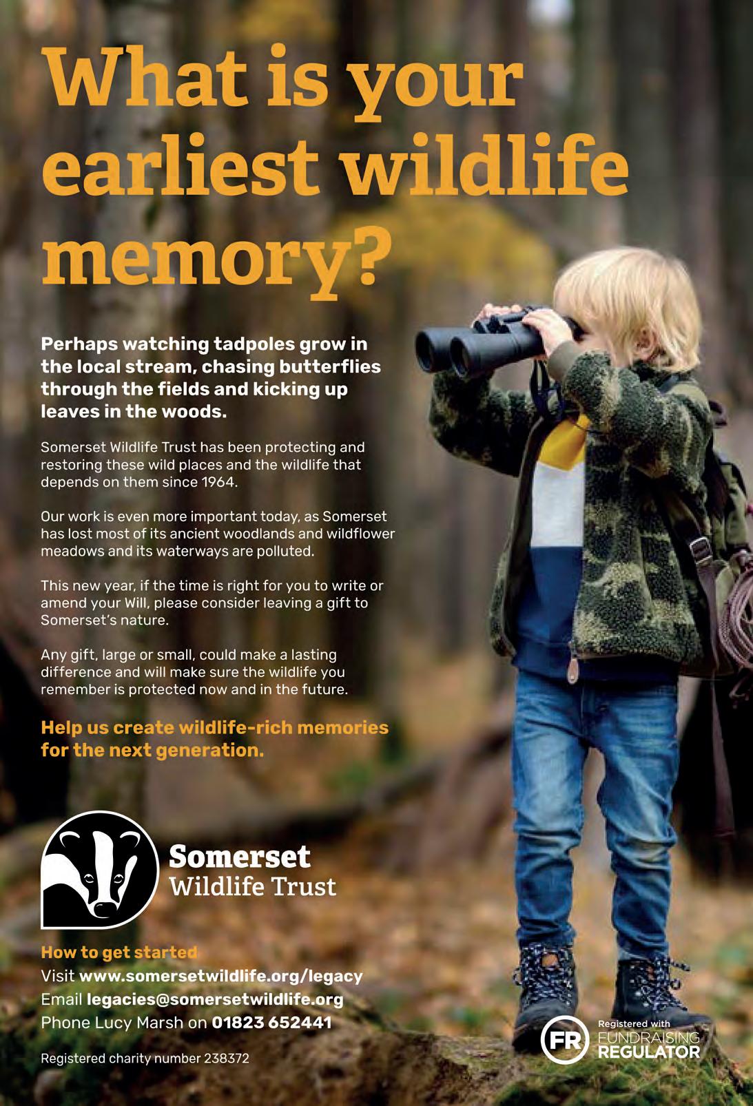 The more improvement can be made to the natural environment locally, the more opportunity there will be to promote health and wellbeing of local people too. And people, especially young people, care about and are engaged with the issue. A survey across 10 countries led by Bath University revealed that more than half of young people are stressed about the climate and ecological crises. For more information about the project and how you can help with Somerset Wildlife Trust’s ambitions for a wilder future, please email: teamwilder@somersetwildlife.org or visit: www.somersetwildlife.org