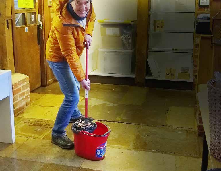 Walford Mill trustees dashed with mops to Wimborne’s Grade II-listed mill building as exceptional rainfall saw water seeping through the floor’s ancient flagstones from the mill race below.