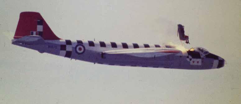 EJECTION: Capturing the moment a pilot ejects from a Canberra bomber and, below, cameraman Robbie at work over the years