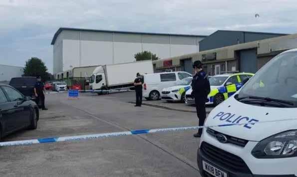 Police on the scene, at the Lufton Trading Estate, in Yeovil