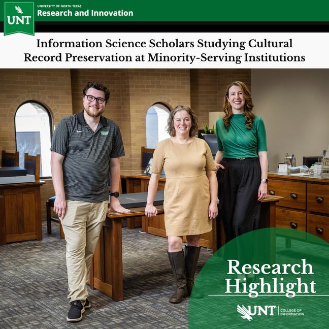 The UNT team’s grant proposal was one of only seven recently selected for funding by the NEH as part of its Research and Development Grant Program and its special initiative, American Tapestry: Weaving Together Past, Present, and Future. As a Hispanicand Minority-Serving Institution, UNT plays a critical role in safeguarding culturally and historically significant documents related to minority groups in the U.S. Previous research has highlighted a potential deficiency in the support provided to archives and special collections at Minority-Serving Institutions, particularly concerning the digitization of cultural records, which is essential to guarantee the preservation and accessibility of these records. In this research, Lund and his UNT colleagues will comprehensively examine the landscape of