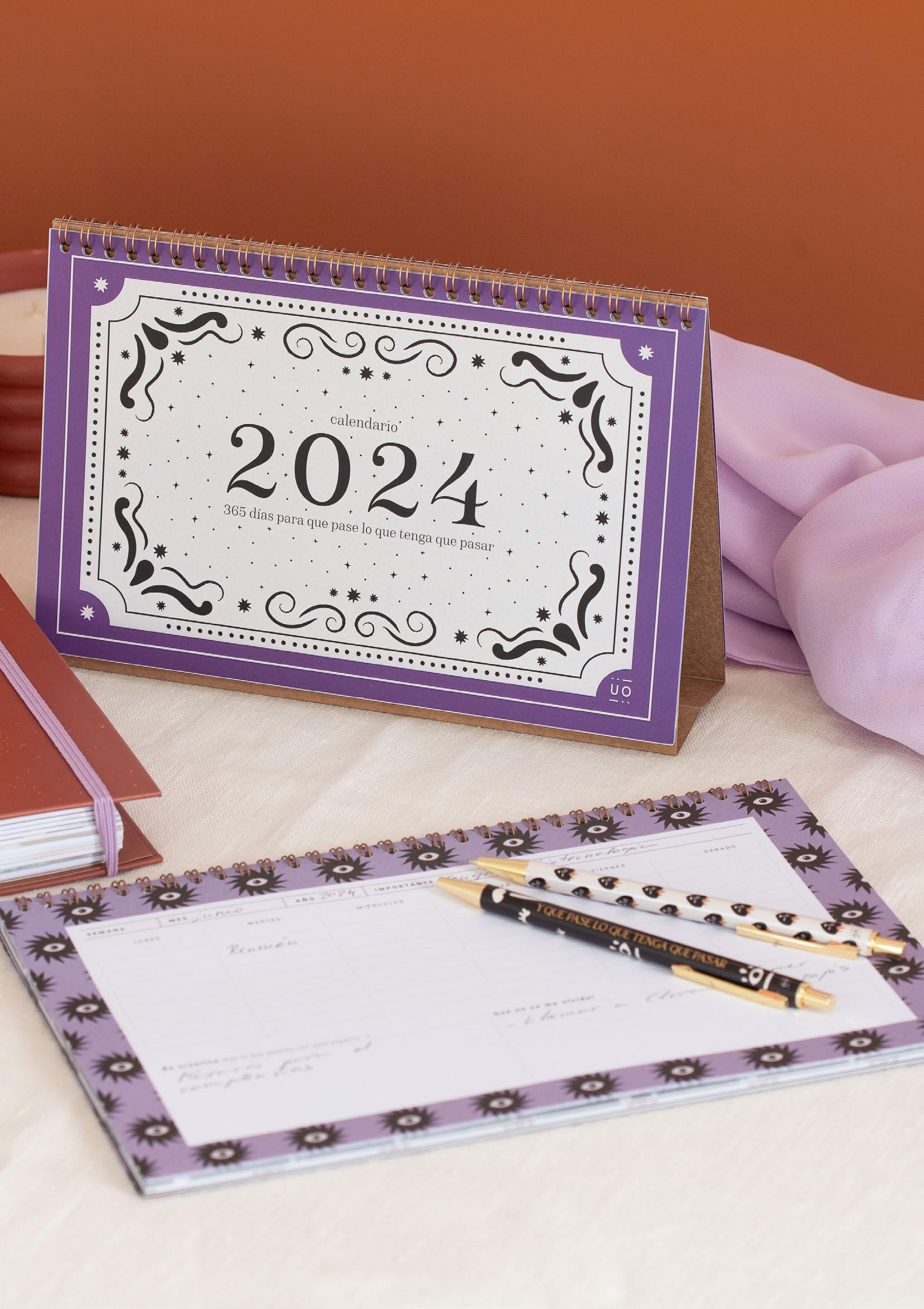 Organizar el tiempo y disfrutar de él. Dos calendarios anuales completos (2024 y 2025), otro al principio de cada mes y uno más pequeñito mensual en todas las semanas.