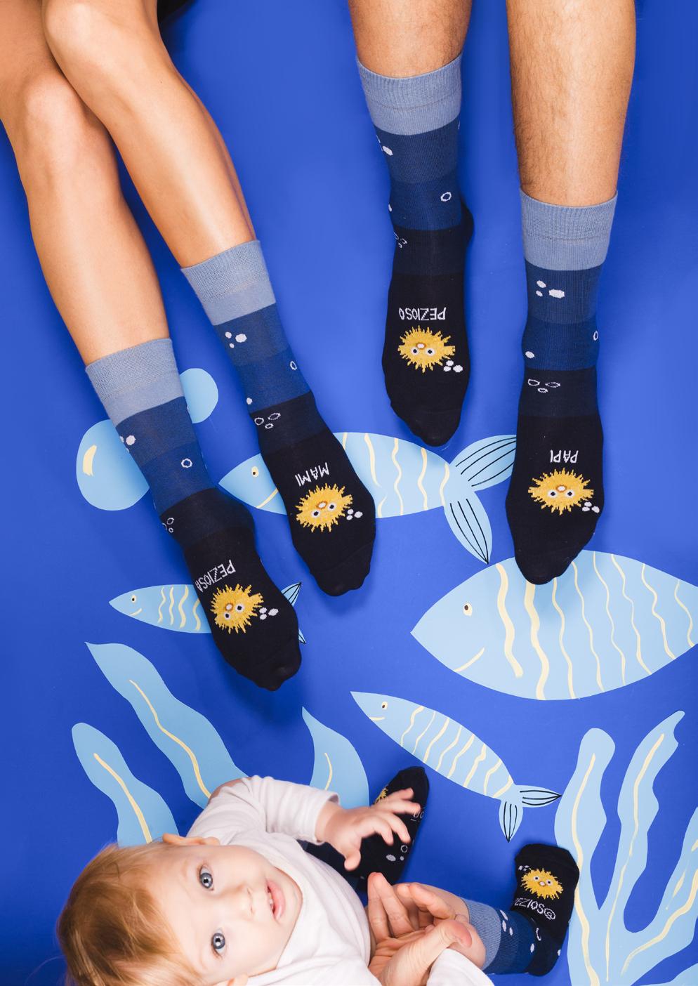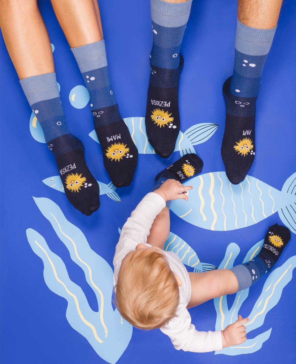 Sois un banco de pezios@s y tenéis que proclamarlo a los cuatro vientos -o mejor dicho: a los cuatro mares- con estos calcetines a juego para toda la familia.