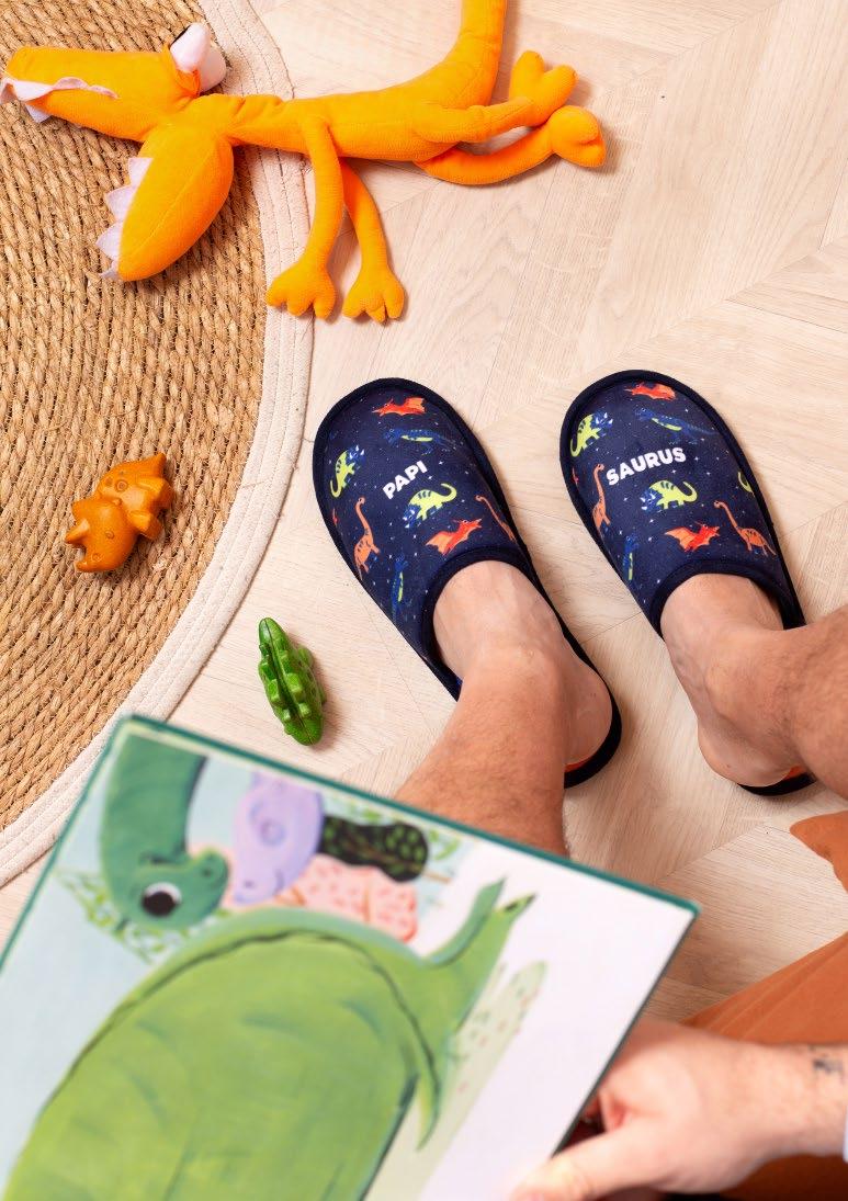 I ncluye: Caja, Calcetines “Papisaurus”, Calcetines mini “Minisaurus”