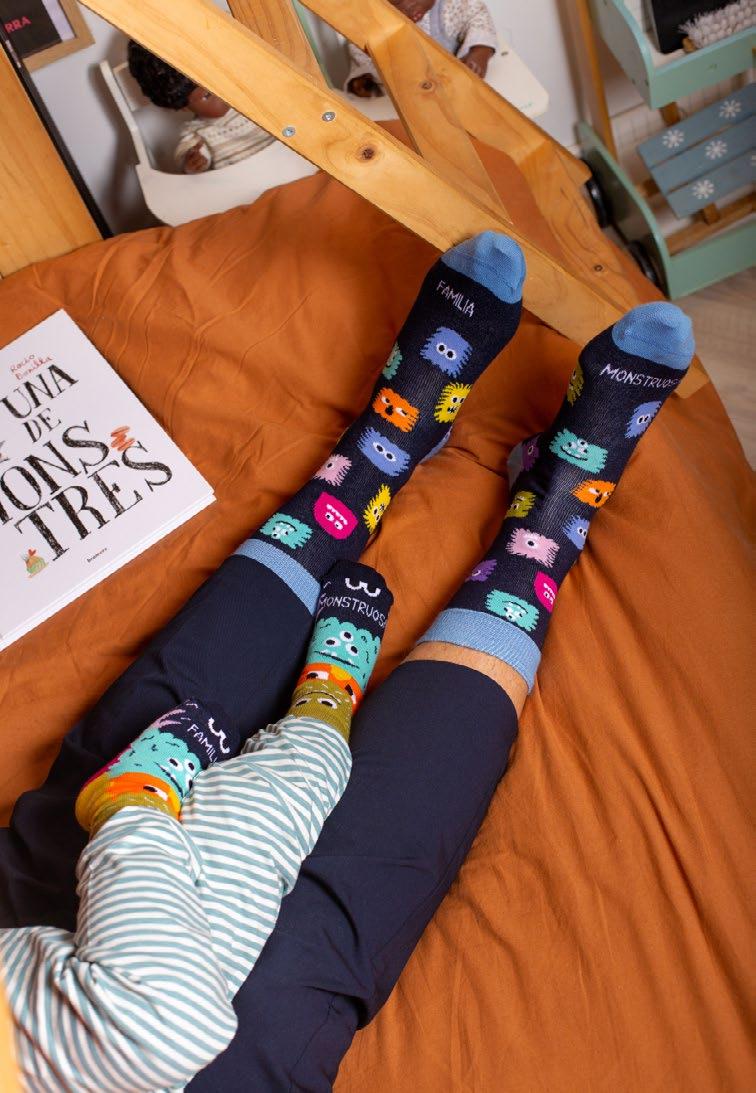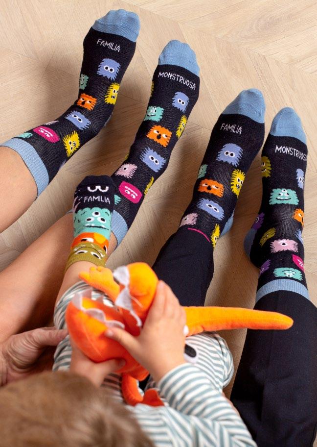 I ncluye: Caja, 2 pares de Calcetines “Familia monstruosa”, Calcetines mini “Familia Monstruosa”