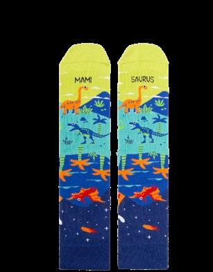 I ncluye: Caja, Calcetines “Papisaurus”, Calcetines “Mamisaurus”, Calcetines mini “Minisaurus”