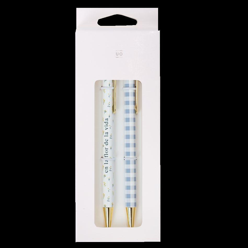Tinta gel recargable azul y negro Cuerpo metálico con clip de enganche Mecanismo retráctil y punta metálica SET DE BOLIS