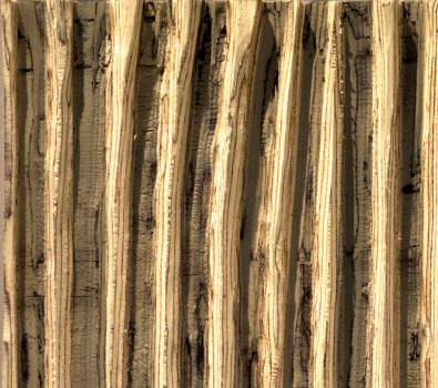 Using a much finer hand tool to add value to recycled hard wood. A much more time consuming way of detailing which uses shadows and reflections to reveal the marks into the material.