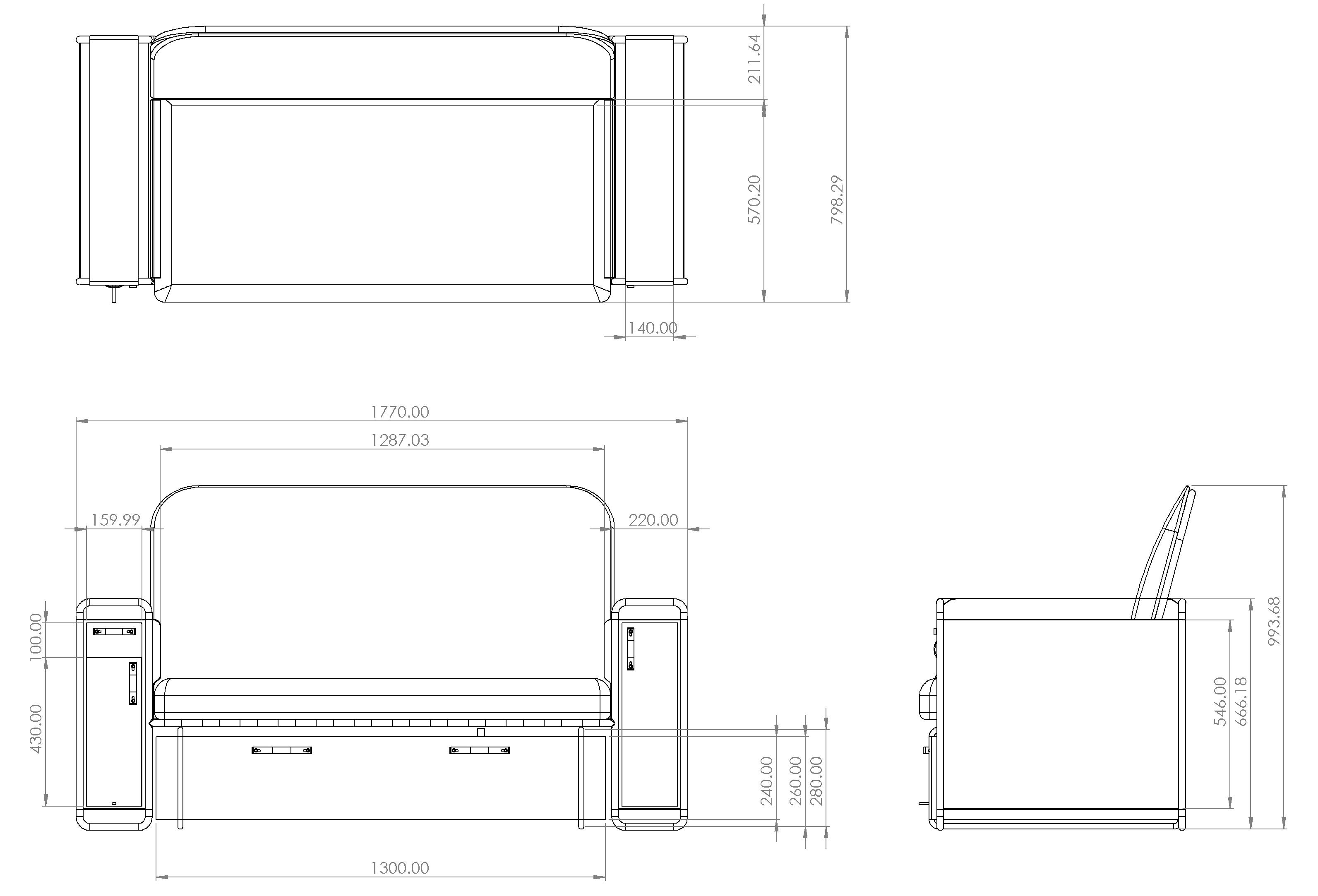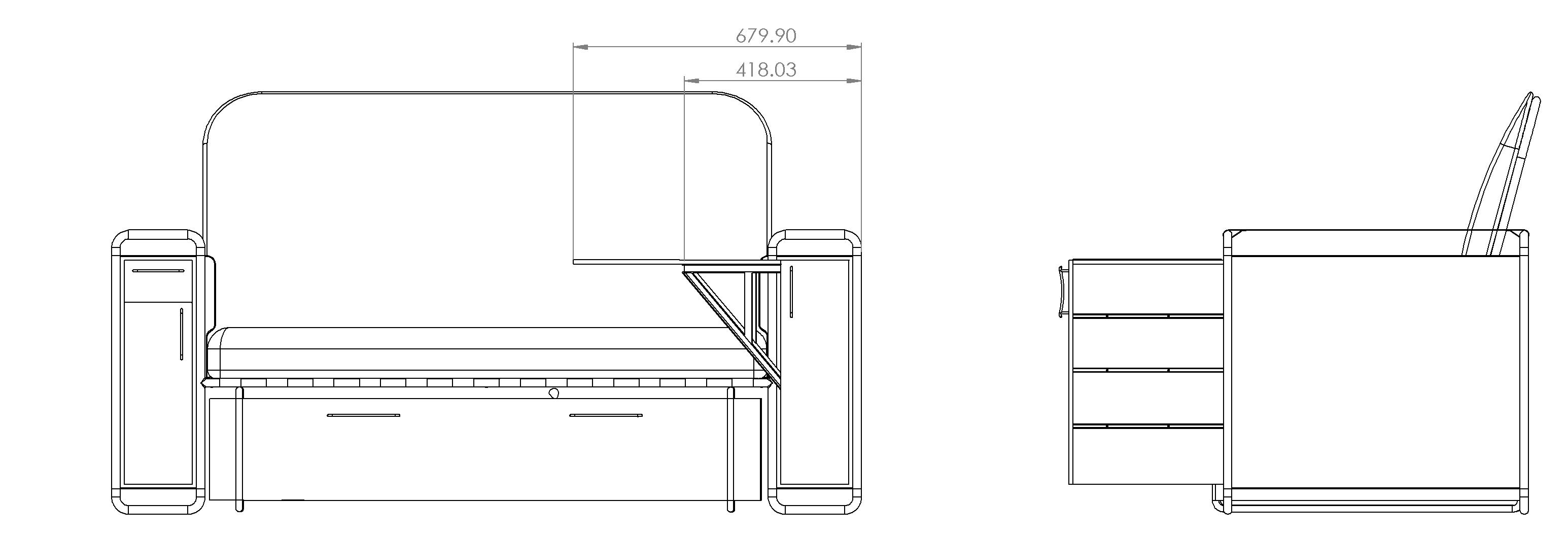 This concept is focused on storage only. Stripping down the whole sofa to just the structure, we can see there is a lot of space that can be used to place items into. This is still a very early stage concept as; the structure can be very fragile and require inner frame support. As soon as the Solidworks model was built, problems started to appear with measurements and would require readjusting. However, with this model it shows all the spaces that can be used in the sofa.