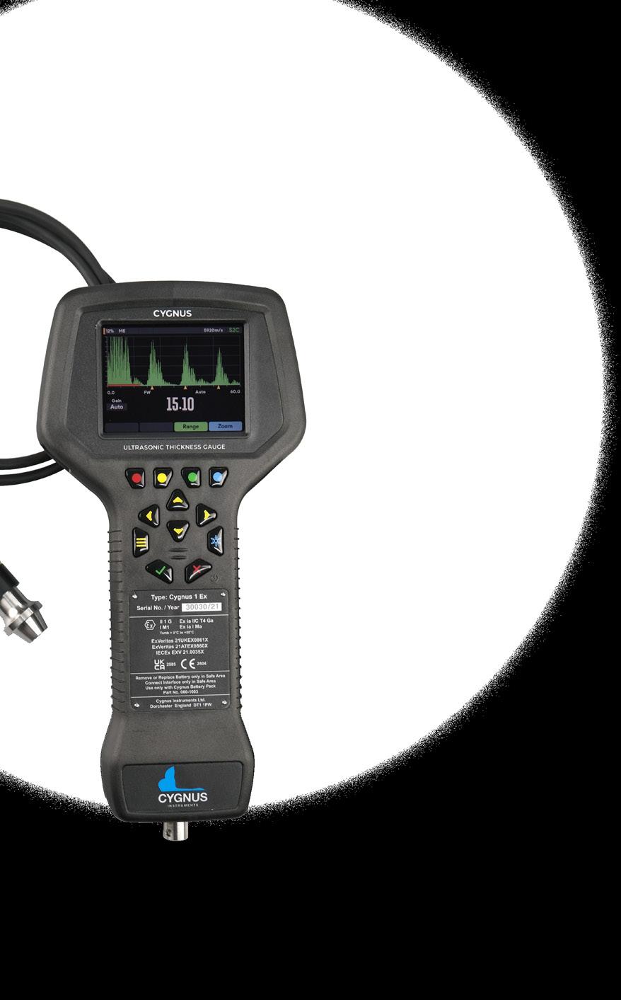 The essential tool for Zone 0 Explosive Atmospheres cygnus-instruments.com • sales@cygnus-instruments.com • Certified to ATEX, IECEx, UKEX for Zone 0 and NRTL for Class 1, Division 1 • 3 measuring modes for corrosion, various materials and through-coat measurements