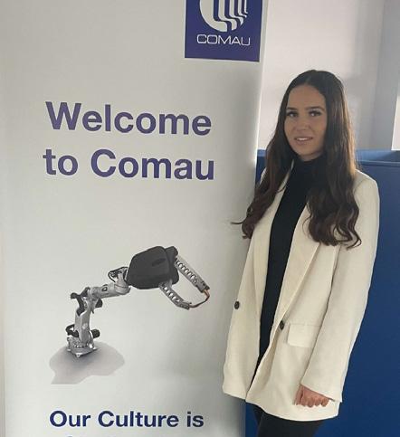 “What I like most about my job at Comau is being involved in different projects every day that are always very interesting. The most challenging part is definitely managing and prioritising my time between work, university and other commitments. However, I like being busy, I am very organised and I think this has allowed me to give my best and always achieve excellent results in my career and studies”.
