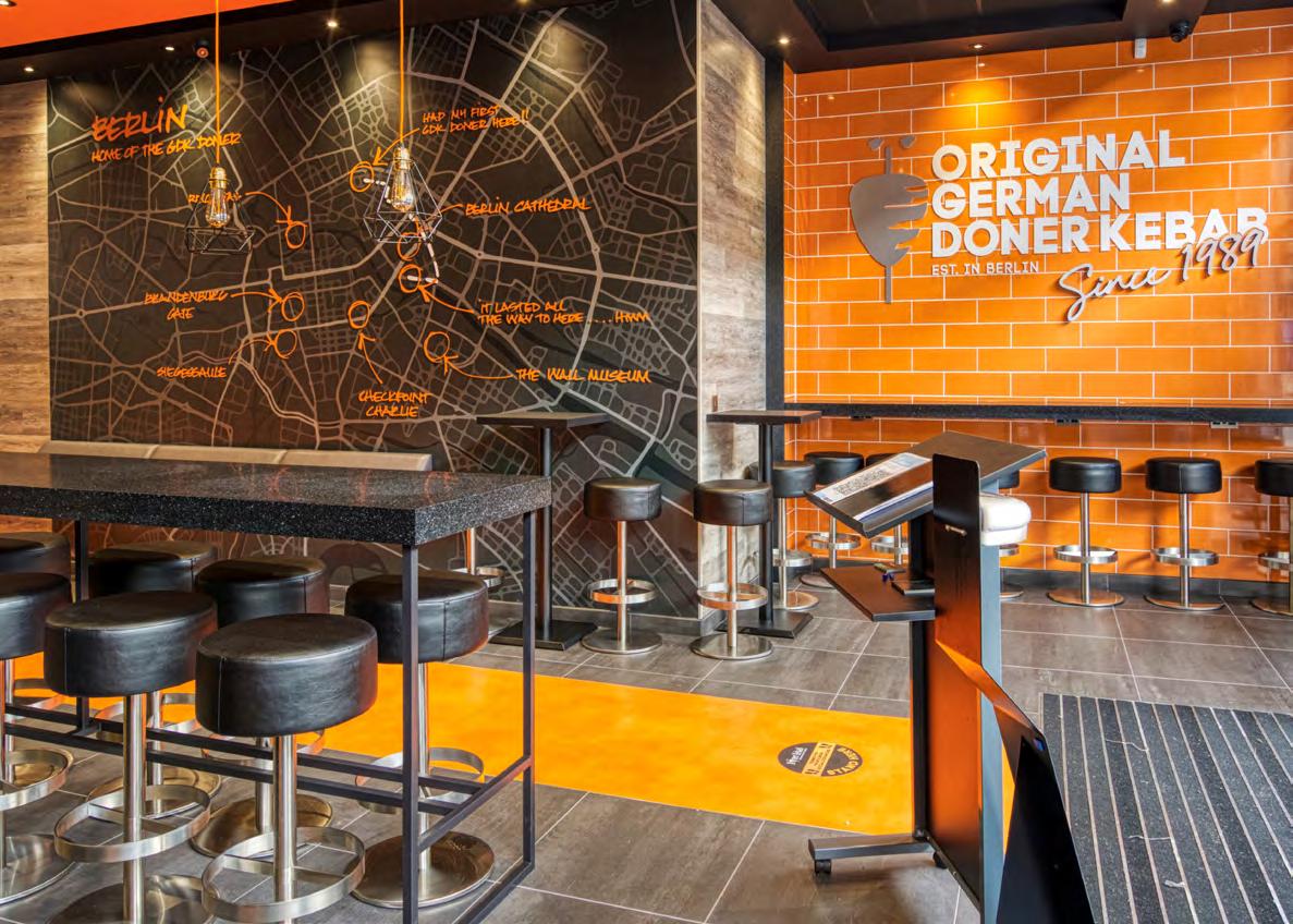 James Latham, one of the UK’s leading independent materials distributors, has recently collaborated with German Doner Kebab (GDK), supplying over 1,000 sheets of HIMACS Cima and Orange for the fit-out of multiple UK sites.