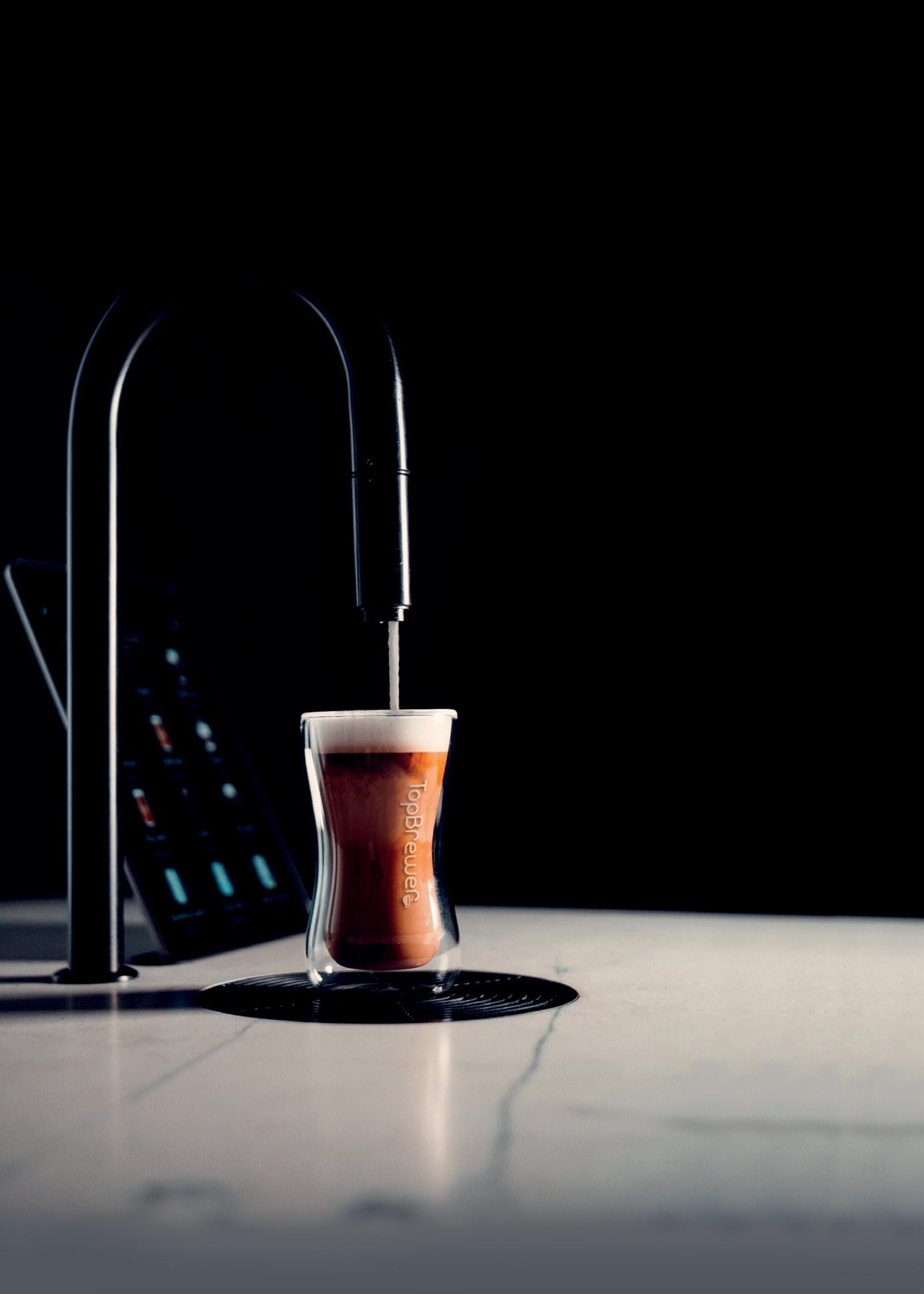 TopBrewer’s patented world’s smallest milk foamer makes perfect lattes, flat whites and cappuccinos.