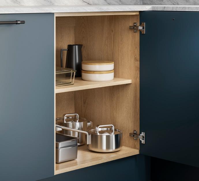Available in a range of designs and colours, Howdens offer a 25-year guarantee on all of its cabinets, which are also treated with antibacterial surface protection on shelves, side and back panels to prevent bacteria from surviving and multiplying.
