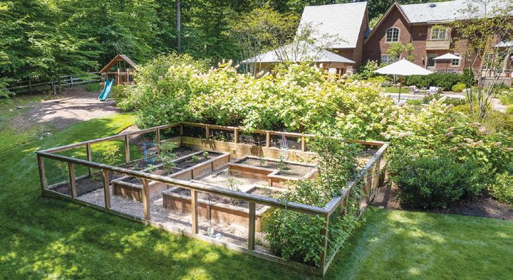 Landscaping. Starting in 2015, spaces for play equipment and a kitchen garden were established, and serviceberry trees, oakleaf hydrangeas and summer meadow bloomers planted. Close to 100 additional trees replenished the forest edge. “We went with nothing smaller than two-inch calipers,” says thenproject manager Justin Spittal.