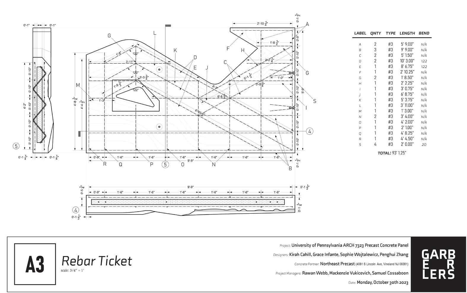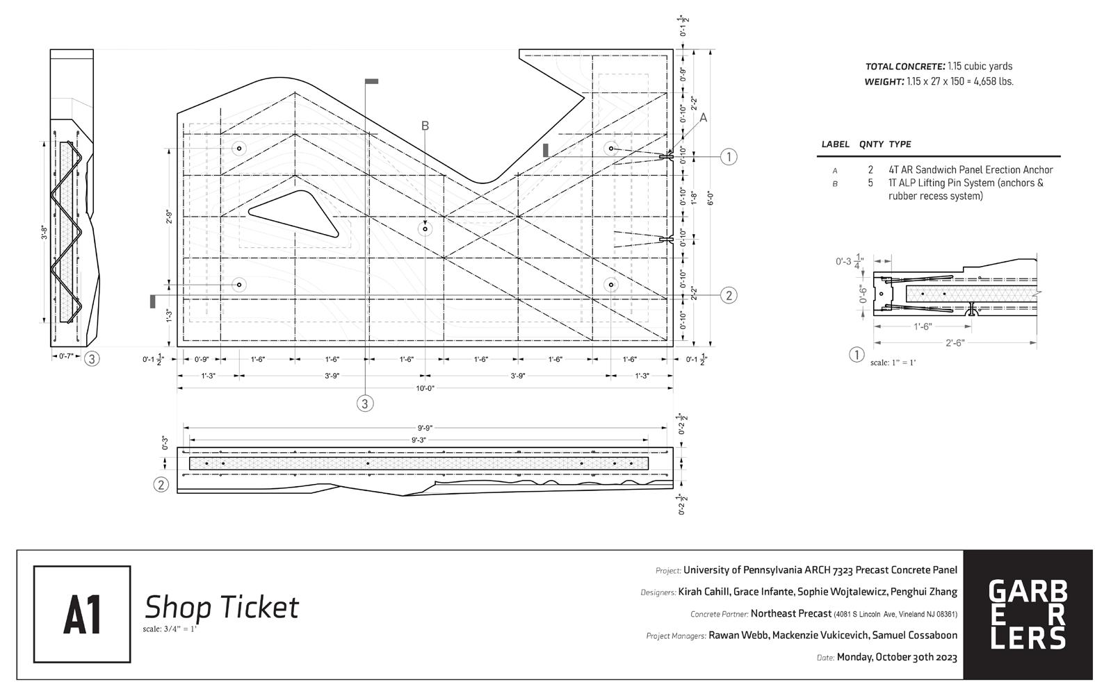 The shop ticket outlines all the components that went into our panel, with emphasis on the rebar and lifter placement.