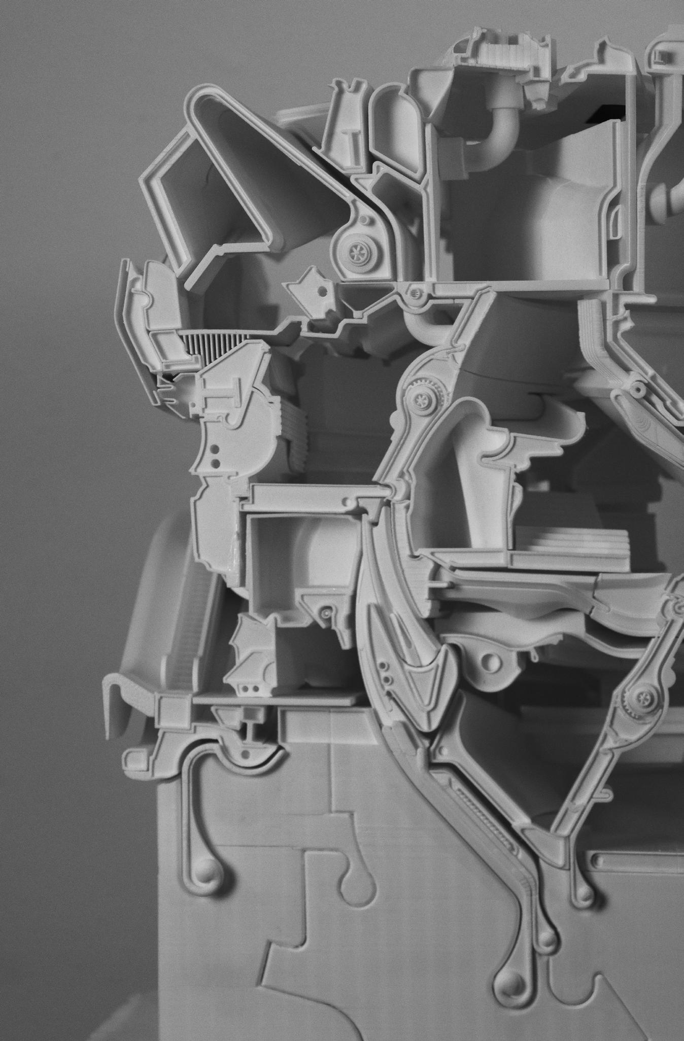 Recent developments in the automobile industry include form that is developed using sculpted surfaces, uses floating elements in space and inspired by nature. These formal techniques include integrating differences into surface continuity including opacity and transparency as well as LED lighting. Structure is also integrated into the material, particularly a new material called forged composite technology which reduces the monocoque structure to the thinnest of layers, simultaneously reducing body weight of the automobile by 40 percent.