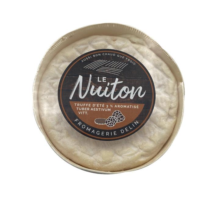 Fromage à pâte molle truffée, à la texture crémeuse et souple, à la saveur douce et à la croûte fine.