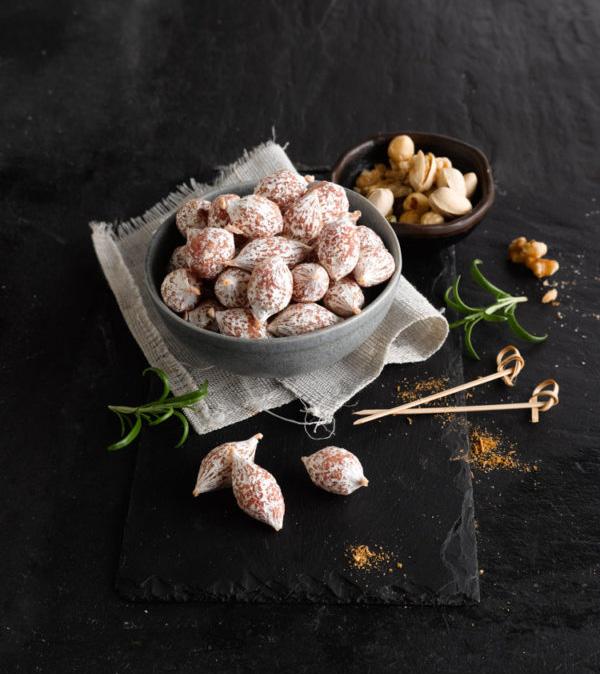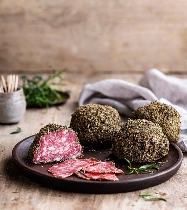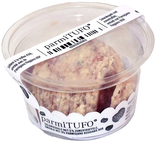 verleiding. Fijne balletjes van een heel bijzondere salami-specialiteit varkensvlees met heerlijke zomertruffel, omhuld met echte Reggiano Parmezaanse kaas.