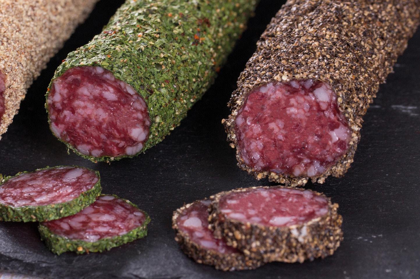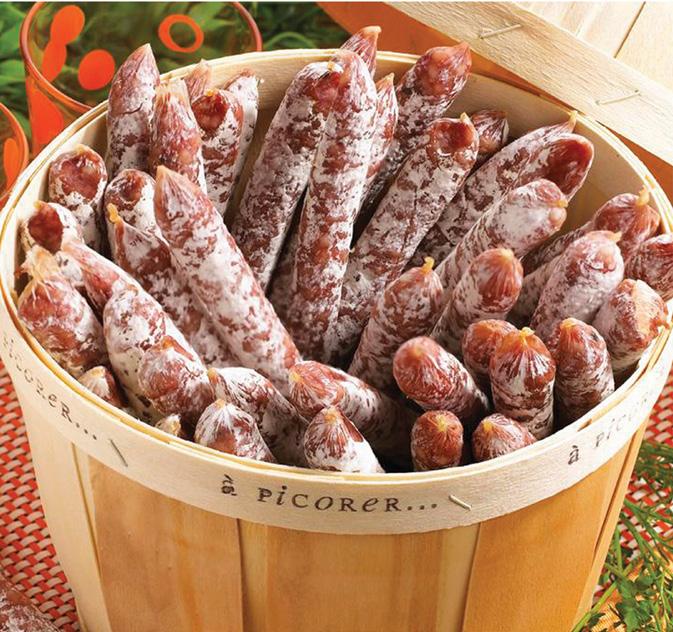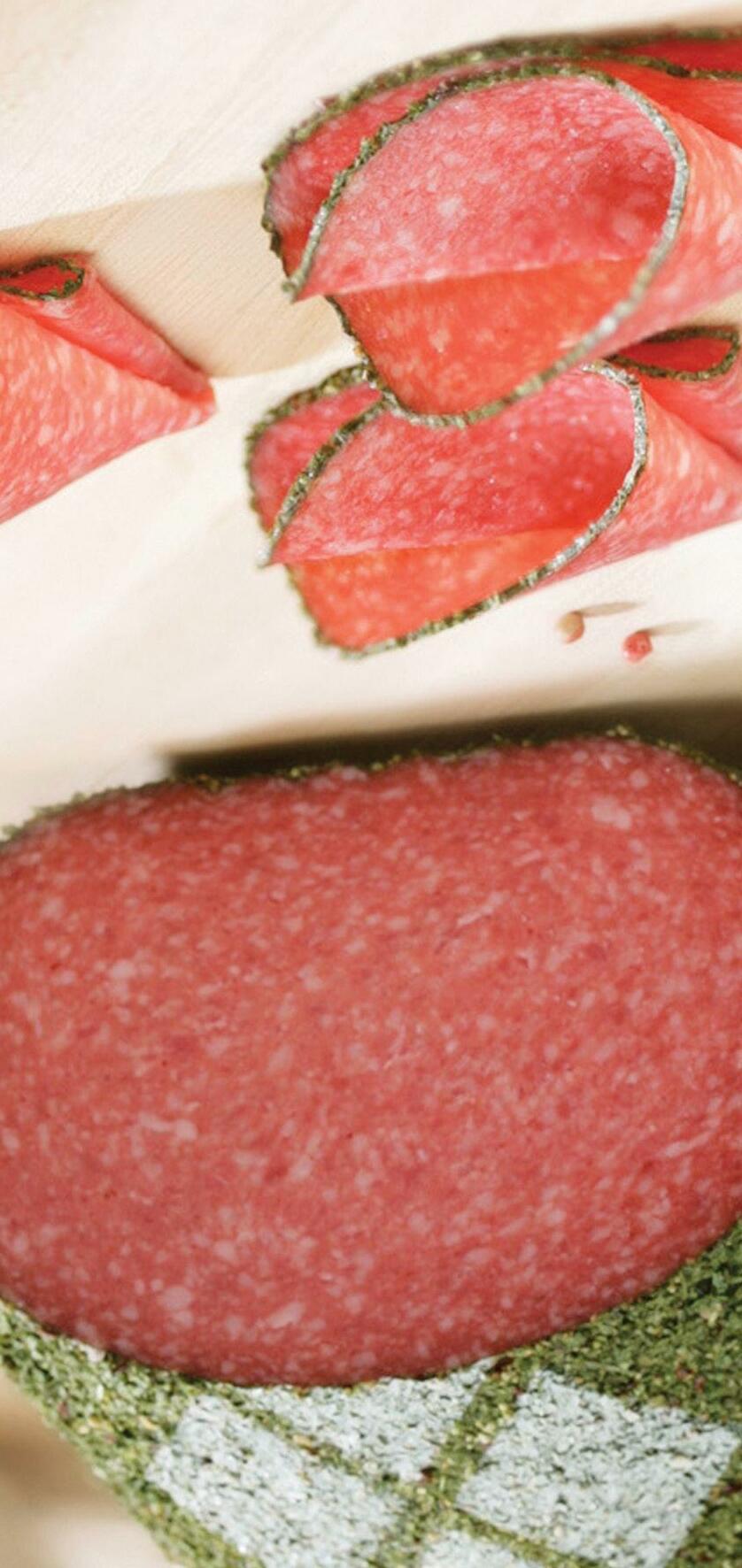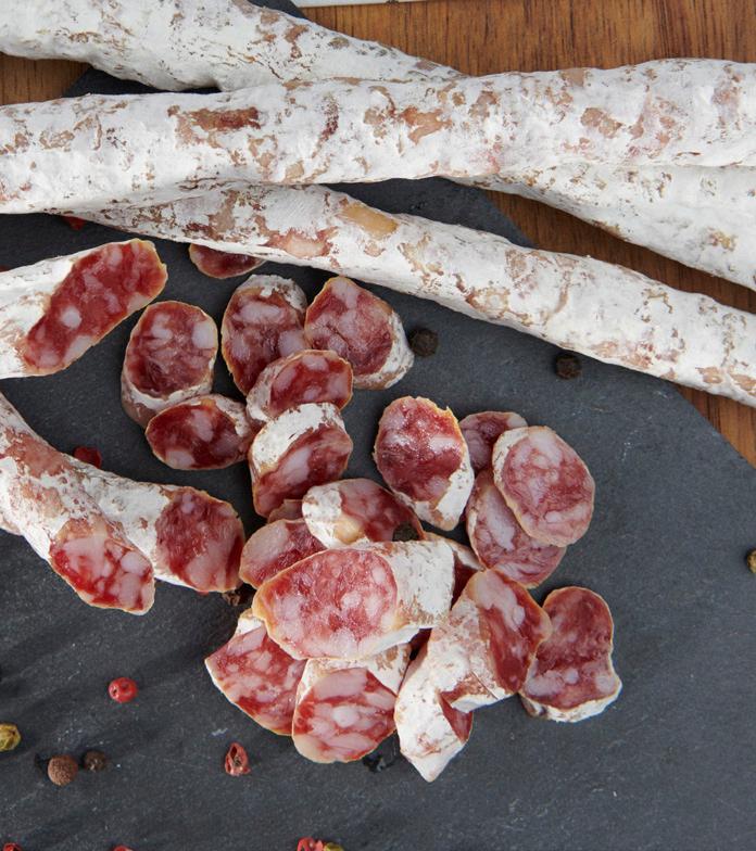 Après un assaisonnement au sel, la viande est séchée et couverte de saindoux pour mieux s’affiner. Ce sont les secrets à l’origine des saveurs etarômes de ce produit traditionnel.