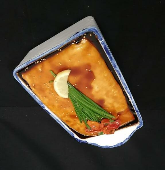 entranchesfinesouchaudentranchesplus épaissesavecunesauce.