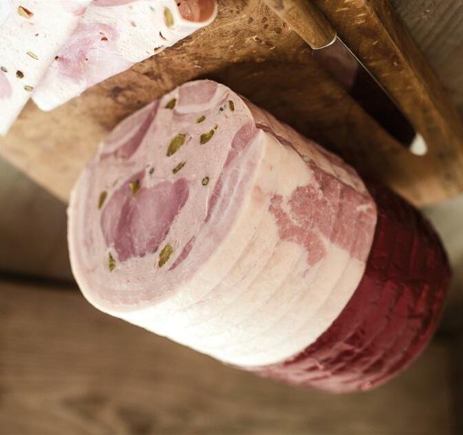 Een lekkernij gemaakt van varkenshammen uit Noord-Italië. Nadat het vlees op smaak gebracht is met zout wordt het gedroogd en bedekt met een laagje reuzel om zo beter te rijpen.