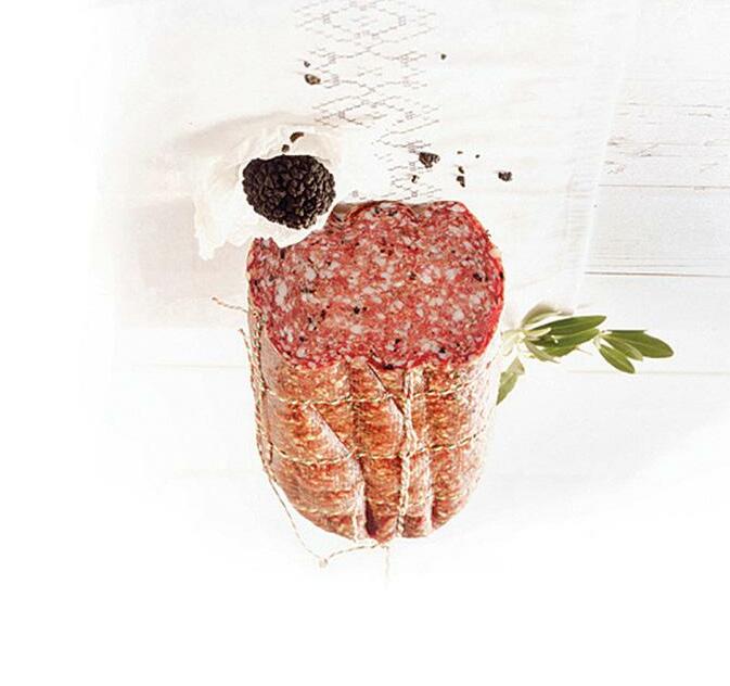 Salami à la truffe d'été, enrobé avec du Parmigiano Reggiano.