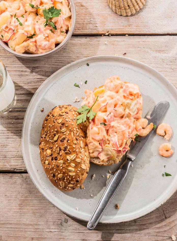 Zomerse mengeling van scampi en roze garnalen verrijkt met de fijnste surimi in een fris cocktailsausje met een scheutje whisky en heerlijke stukjes ananas.