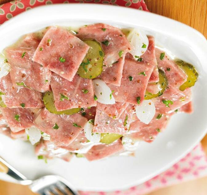 Une délicieuse salade italienne à base de viande de veau hachée et de thon frais. Le tout mélangé avec de la mayonnaise maison avec de la ciboulette, de l’oignon et des câpres.