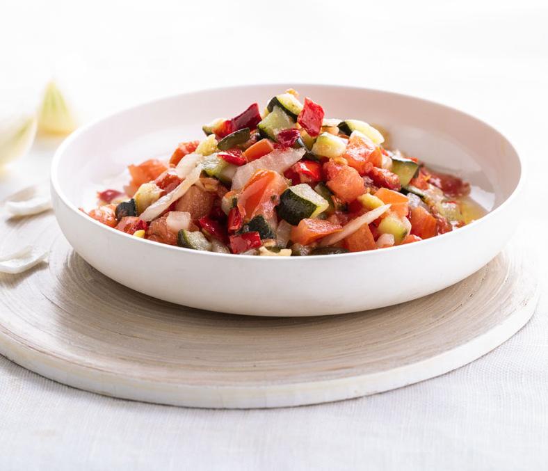 Couscoussalade met tomaat, paprika, peterselie en munt.