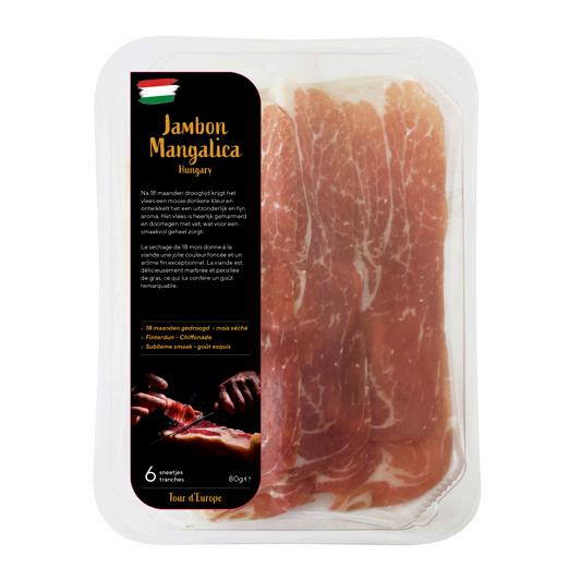 JAMBON MANGALICA HUNGARY 4X80 G (80 G = 6 SNEETJES)