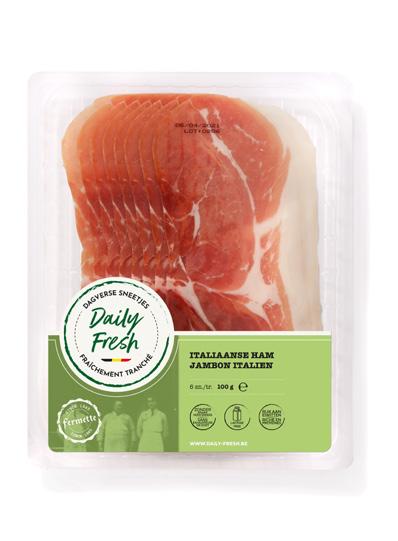 PROSCIUTO DI EMLIA ROMAGNA 4X80 G (80 G = 6 SNEETJES)
