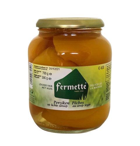 PERZIKEN OP LICHTE SIROOP 12X370 ML PÊCHES AU SIROP LÉGER 12X370 ML 074.67.003 Fermette
