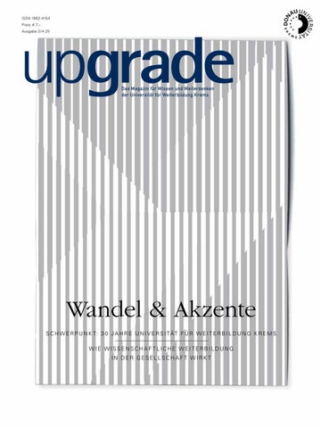 University for Continuing Education Krems is THE university for continuing education. Its courses are specifically oriented toward the needs of working professionals. The university offers exclusive master's programs and short courses in five areas of study. Serving 8,000 students and with 25,000 graduates from 90 countries, it is one of the leading providers of further education courses in Europe. University for Continuing Education Krems as a competence center for lifelong learning also provides an "upgrade" for your knowledge. The identically named magazine looks at trends of university continuing education and discusses topics of socio-political and educational relevance from various points of view, thus creating space for interdisciplinary approaches. "upgrade" is published 4 times a year. Furthermore, you will find our annual course program and research report as well as information brochures on this channel.