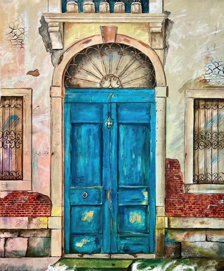 inspiration for her door series. She says, “I grew up in Arlington, Texas, until I was 14, then attended high school in Kaiserslautern, Germany and London, England, where my father taught at a school for military dependents. I also explored many other