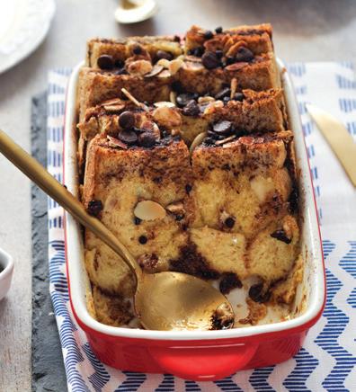 3. Whisk milk, eggs, sugar, butter, and vanilla; pour over bread.