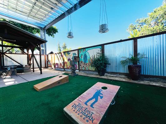 Over the years, a small selfcontained community has developed on the north side of the Esplanade in Chico, offering a true staycation opportunity. Home to Hotel James, Wine Time, The Lost Dutchman Taproom, and Strong Water Craft Cocktail Lounge, this little slice of heaven invites visitors to stay, play, and sample the flavors of Northern California. Though you'll find delicious bites to the right at Wine Time, the Lost Dutchman patio sits adjacent to Strong Water, one of our favorite cocktail bars in town. Far removed from the sounds of the Esplanade, it's the perfect place to enjoy the company of friends or a brew from Lost Dutchman Taproom. Though we're thrilled to revel in both, the chance at a competitive game of cornhole has always piqued our interest. You'll discover that a playful blend of friendly competition, treats, and good conversation can always be found here. Lost Dutchman Taproom | 25 Lost Dutchman Dr, Chico