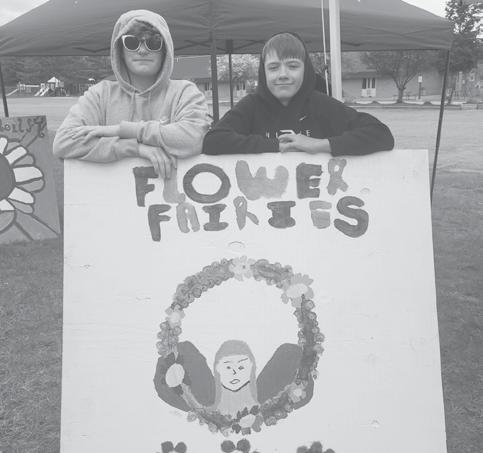 Right: Eighth graders Noah Tappan and Beckett Champagne pictured behind their sign they designed for the plant sale.