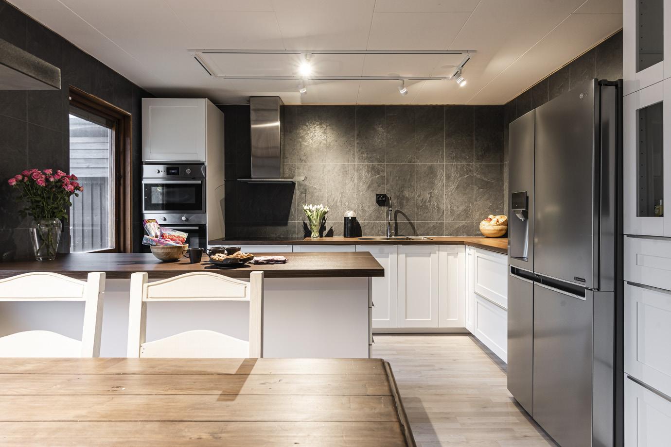 Denna fastighet är verkligen något utöver det vanliga - här finns all lyx och komfort du kan önska dig. Bostaden med sina generösa kvadratmeter är rymlig och välplanerad med stora sociala ytor, två entréer, matsal och tre rymliga sovrum samt inredd vind för tonåringen i familjen. Här finns också ett bio-rum, perfekt för mysiga filmkvällar hemma. Köket är utrustat med köksö och en vacker vedspis som ger en mysig och hemtrevlig atmosfär.