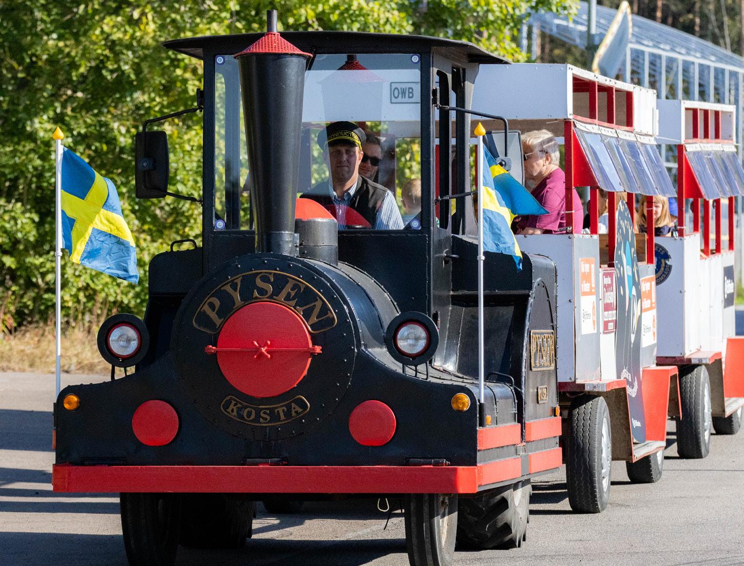 des sedan åt en stor nostalgitripp med bilar. Först besöktes den underbart i skogskanten placerade Björkåkra förskola, därefter Folkets Park, området kring Allt i Plåt och Lärcentret, sedan en stor del av Kexholmsområdet. Färden gick vidare till Baggaberget, en plats vi ofta fick besöka med våra lärare! Minneslunden på Nytorpet och området därikring med nostalgiminnen från badplatsen i Gassjön där vi lärde oss simma. Vidare gick färden till området kring Spaljisten, Profilgruppen och PG Wip. Genom nya tunneln under väg 23 för besök av de nya stora industrietableringarna där. Vidare genom samhället och sedan efterfrågat besök i SR Energys vindpark. Tillbaka till hotellet för återsamling med avslutande fika och farväl och kanske hopp om att ses igen när vi fyller 80
