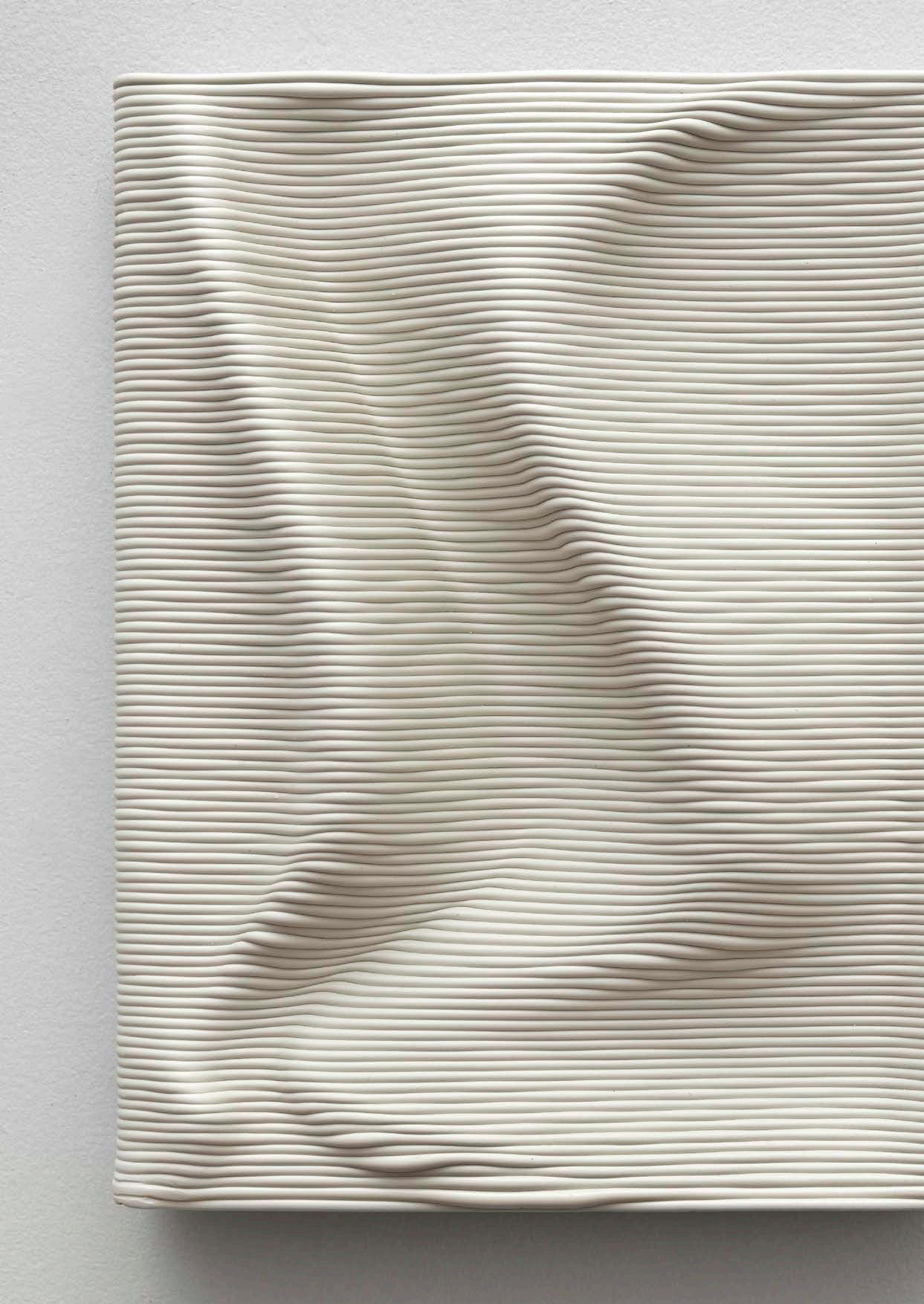 When you touch a touchscreen, you set off a chain reaction of tiny electromagnetic currents in the device. Nuyten, fascinated by the twilight zone in which human actions and the digital world merge, managed to visualise the wave motions that pass through the electrodes after a swipe. These patterns form the basis for Digital Dust, a series of 3D printed reliefs. The individual works have been named after the specific action the pattern causes, such as Airplane Mode On, Swipe Right and Refresh.