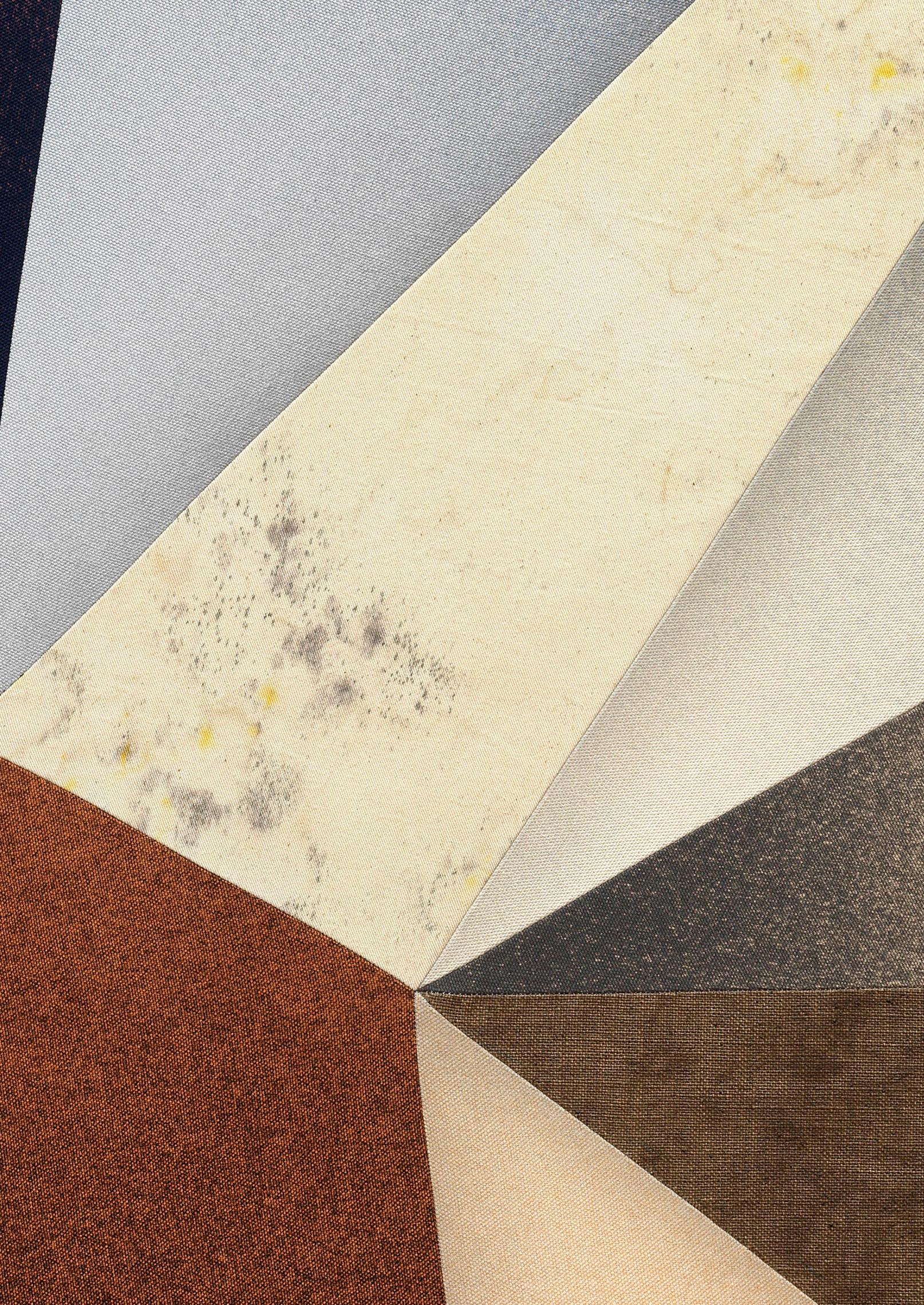 His patchwork paintings consist of pieces of cotton and linen sewn together. Some sections of canvas have been exposed outdoors to rain, dust, and earth; others contain meteorite particles, extraterrestrial matter from the early solar system. A bleaching process creates a refined gradation of colour, comparable to the natural fading caused by prolonged exposure to sunlight. The fabrics thus carry visible traces of the passage of time.