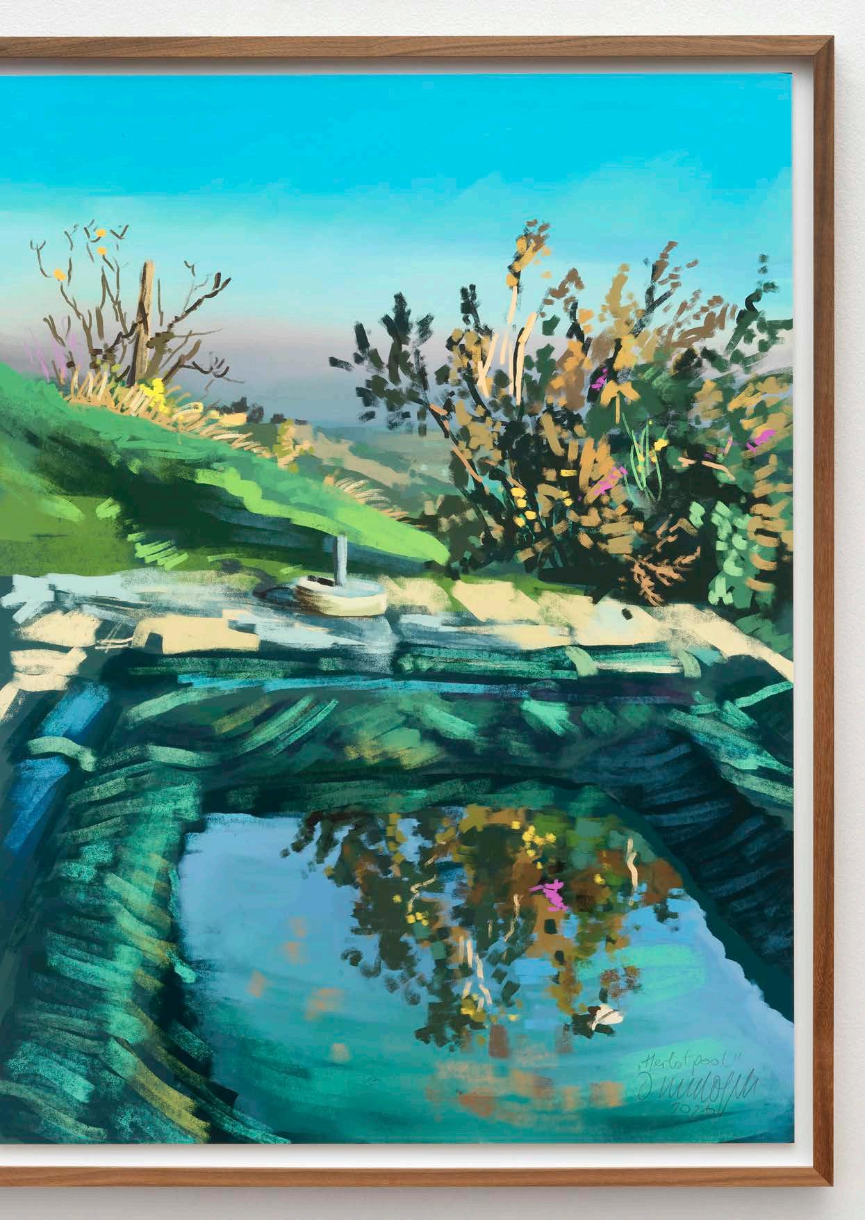 Rudolph thematizes the digital: a smartphone on a balcony, the cool blue glow of a screen illuminating a face. His motifs are familiar—portraits of friends, interiors, and travel impressions—like a phone photo album. Whether in Italy, Siberia, or Pakistan, the iPad serves as a portable studio, enabling immediate, location-based creation without paint or easels, offering a 21st-century take on Impressionism.