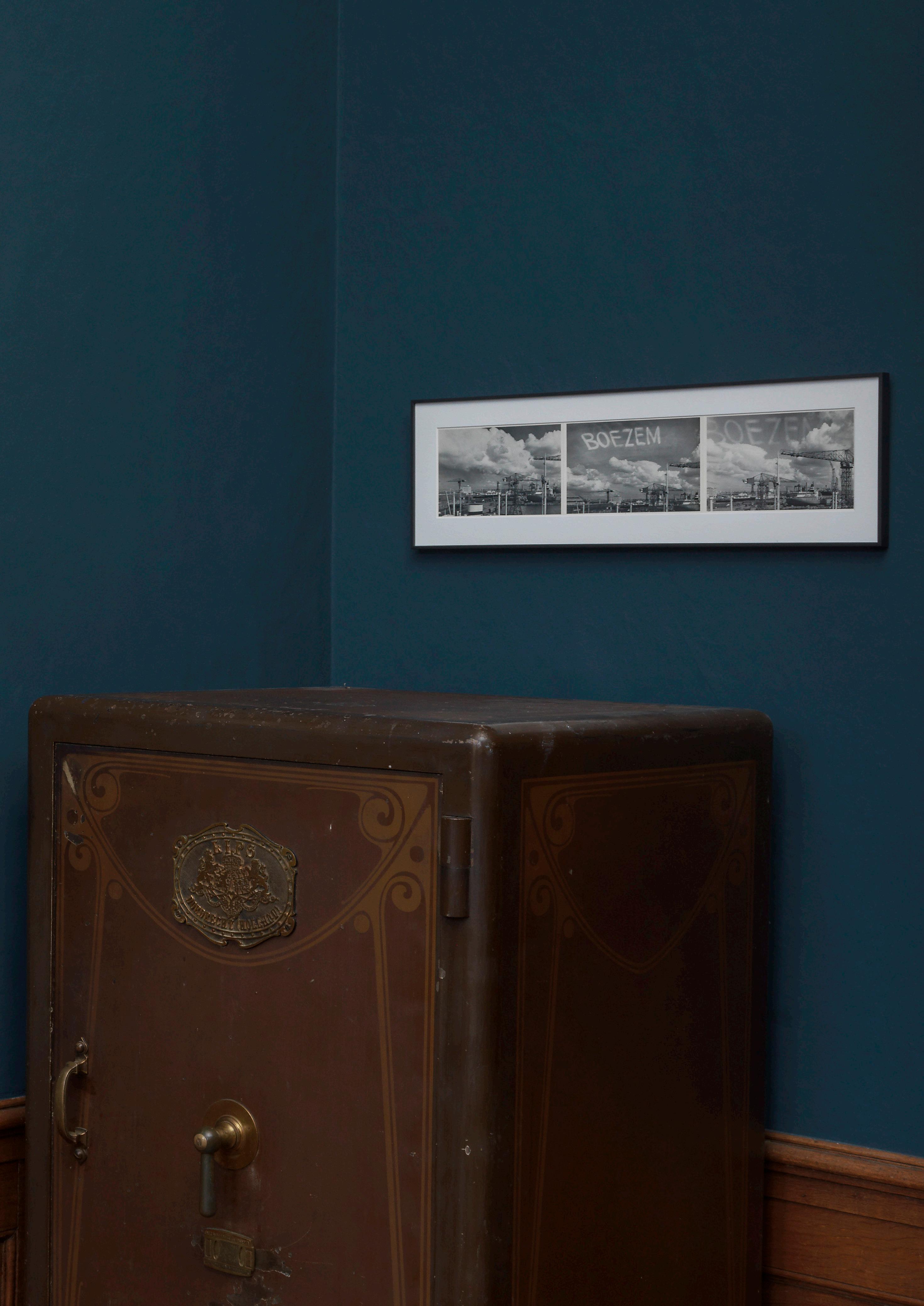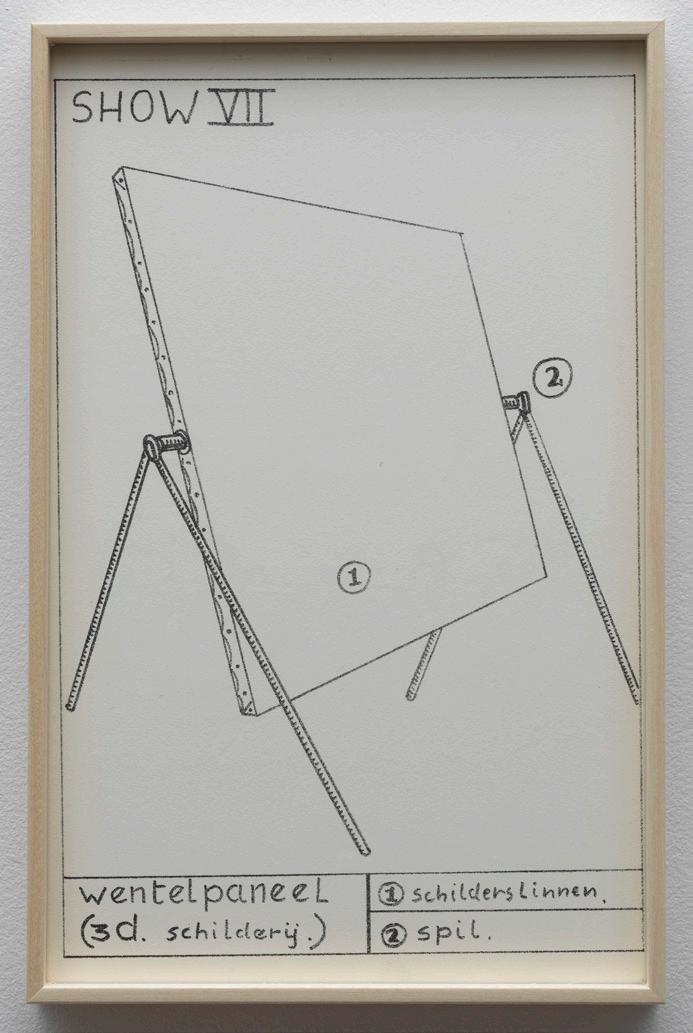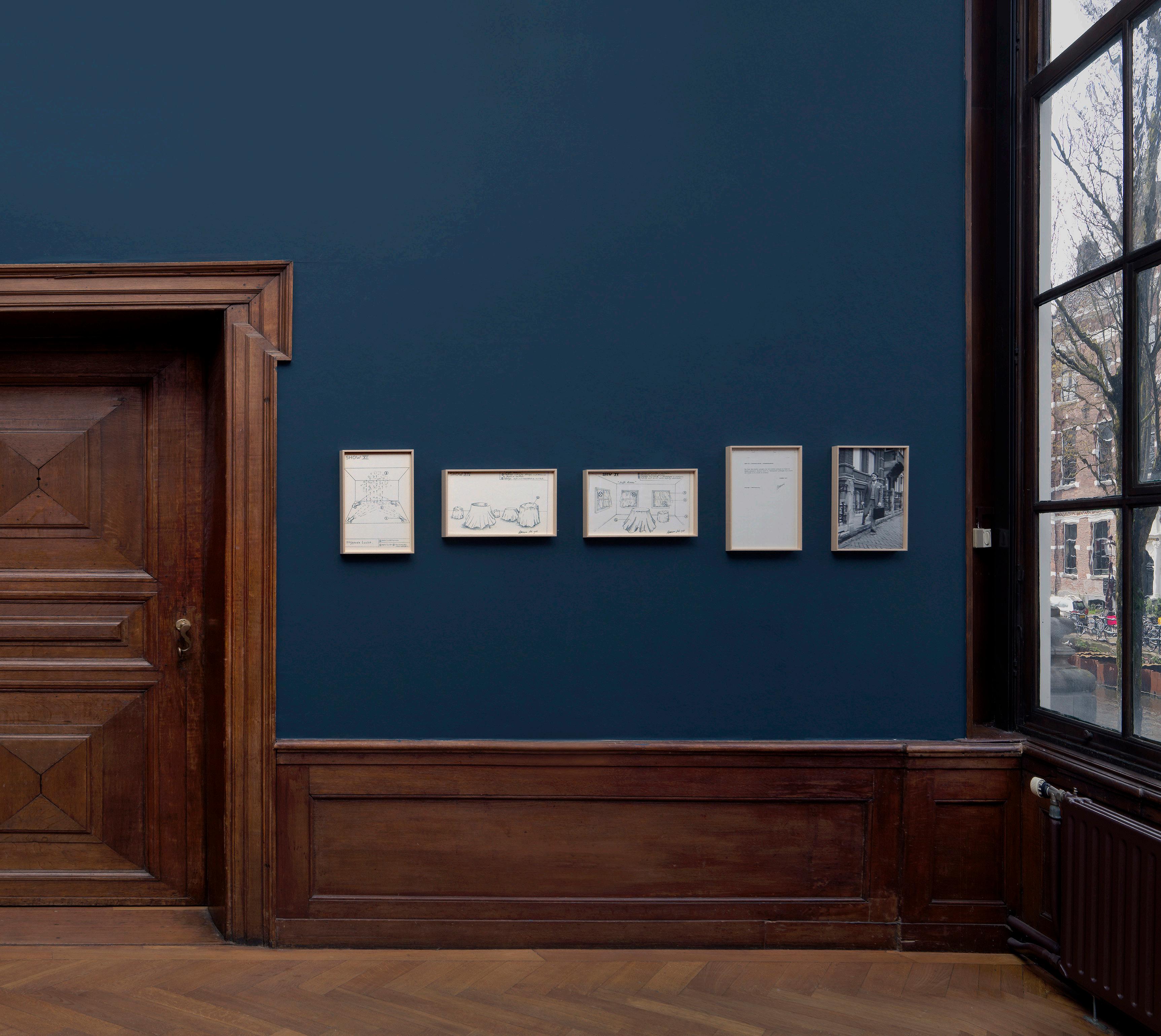 Like a businessman dealing in art ideas, Boezem wore a threepiece suit and carried a briefcase containing his proposals, which he brought to museums in person or distributed to people in art circles. A number of the Shows were realized partially or in full since their conception. In 2021, an exhibition at the KröllerMüller Museum brought all the Shows to life for the first time. This artwork contains 14 pieces, including Shows XI–XV, a typescript, and two photographs of Boezem with his briefcase.